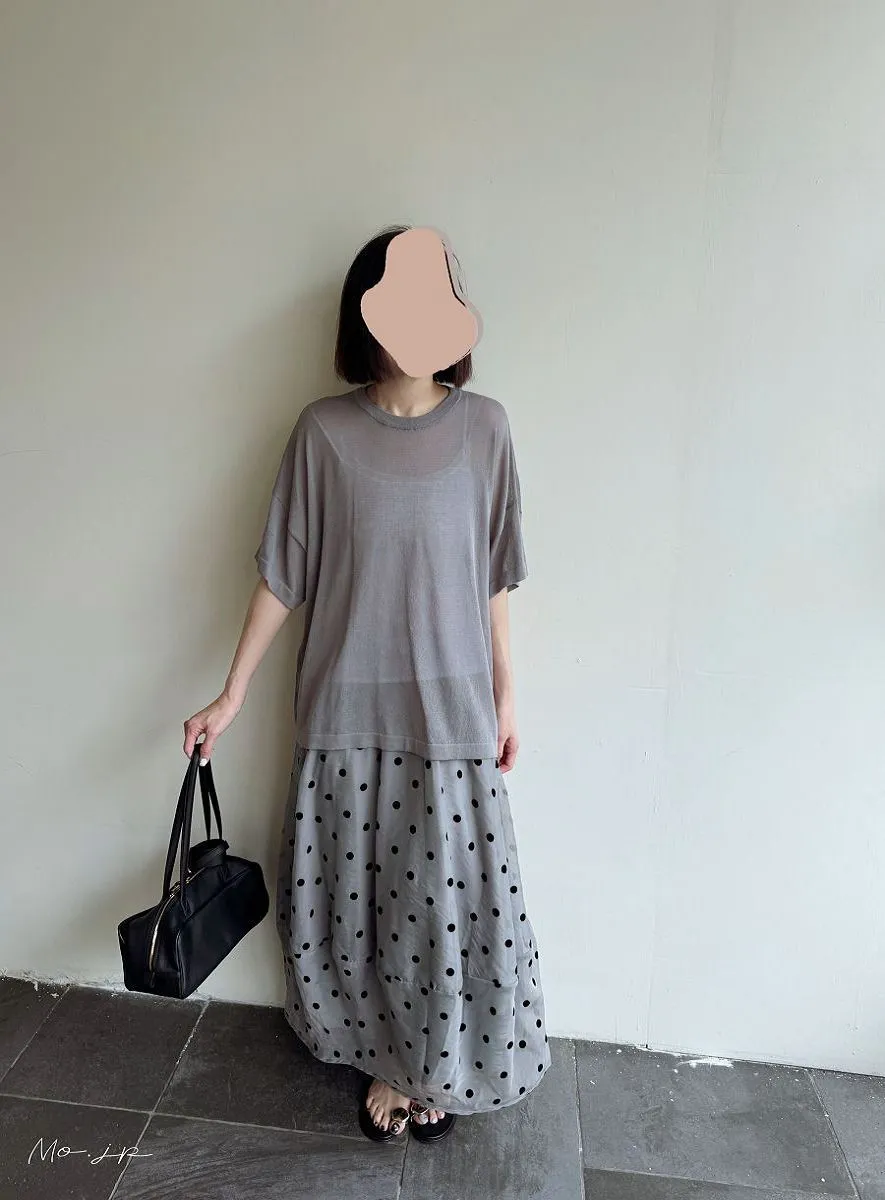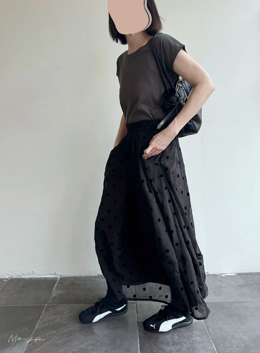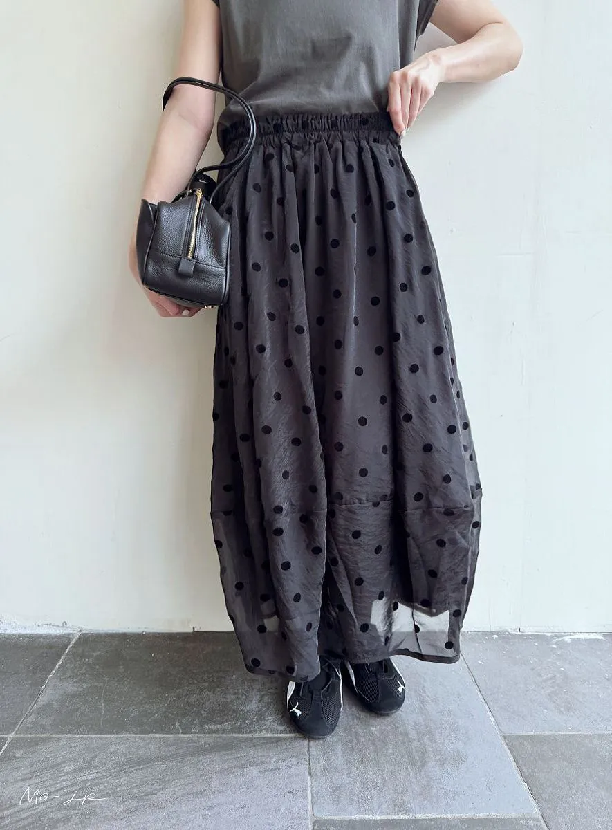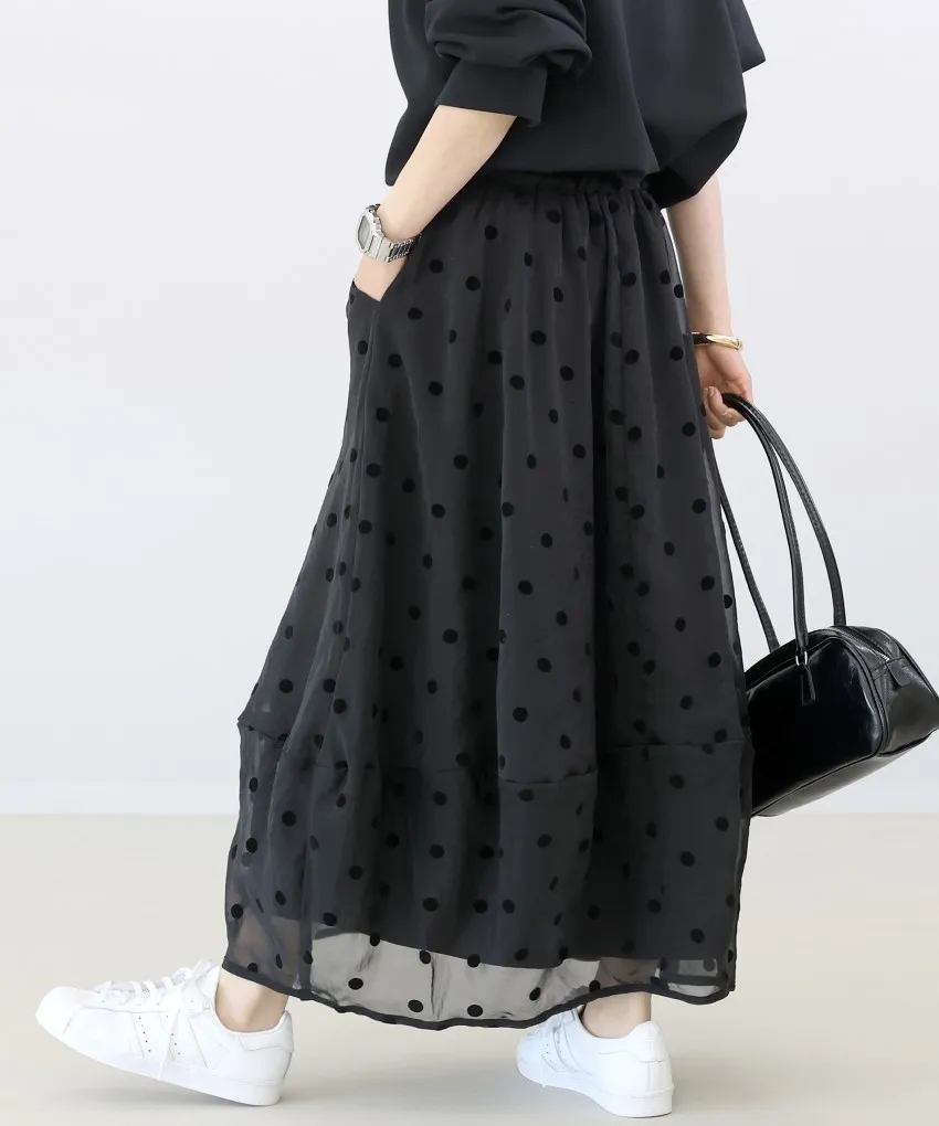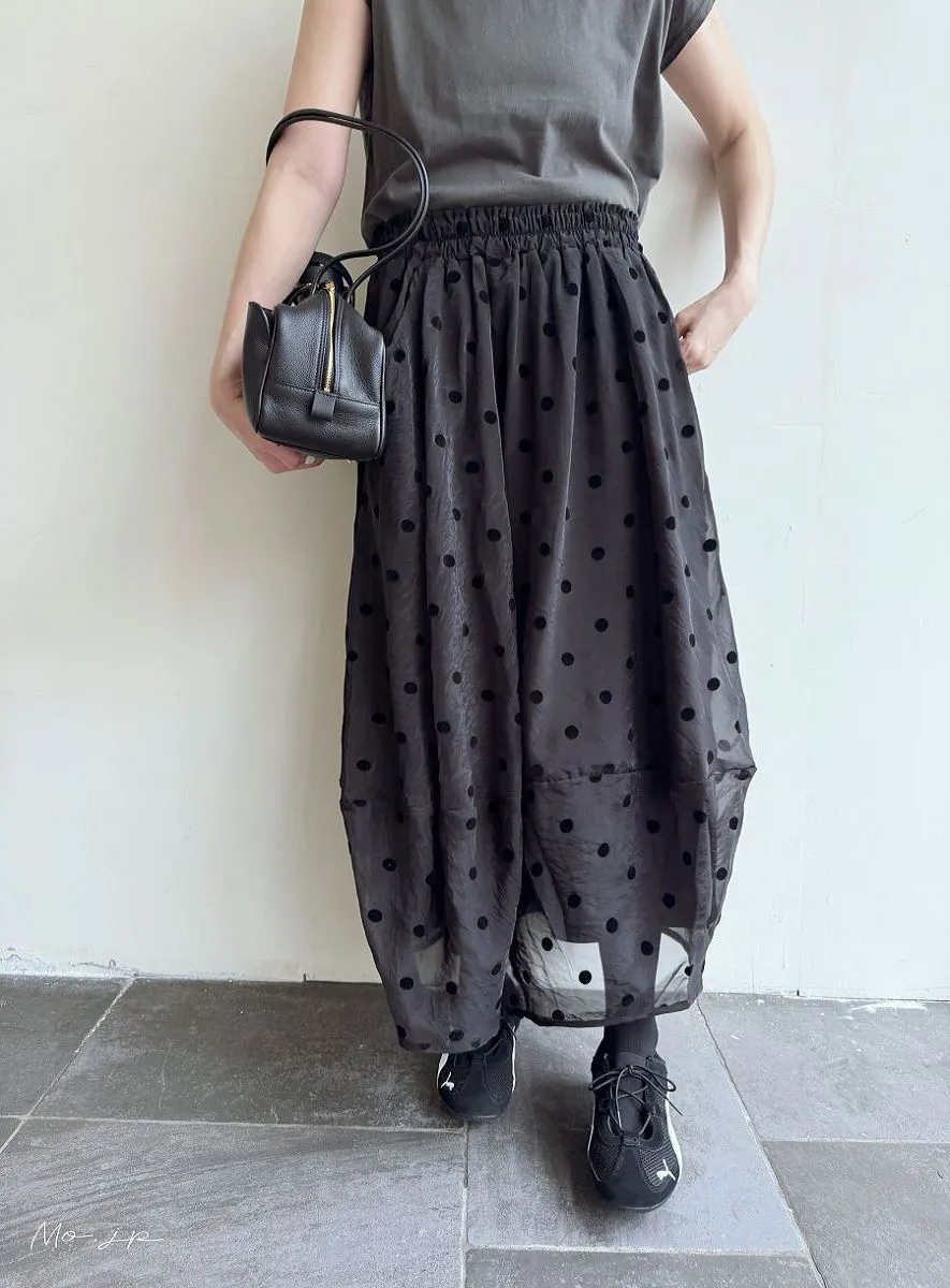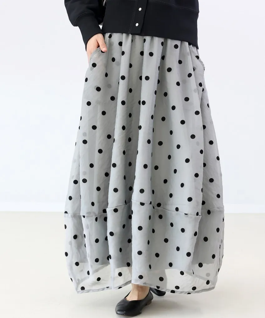 <必收>立體絨面點點刺繡透視雪紡拼接剪裁鐘形氣球裙