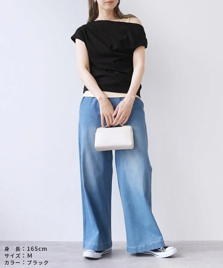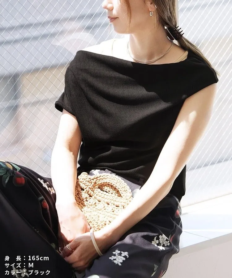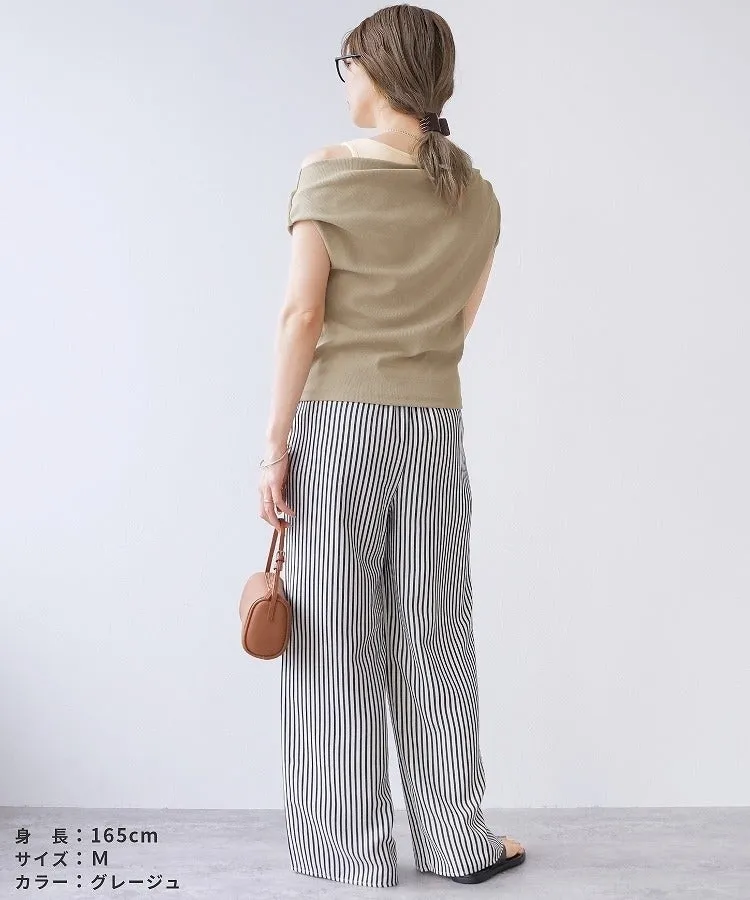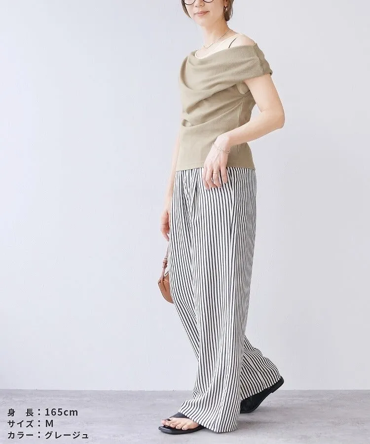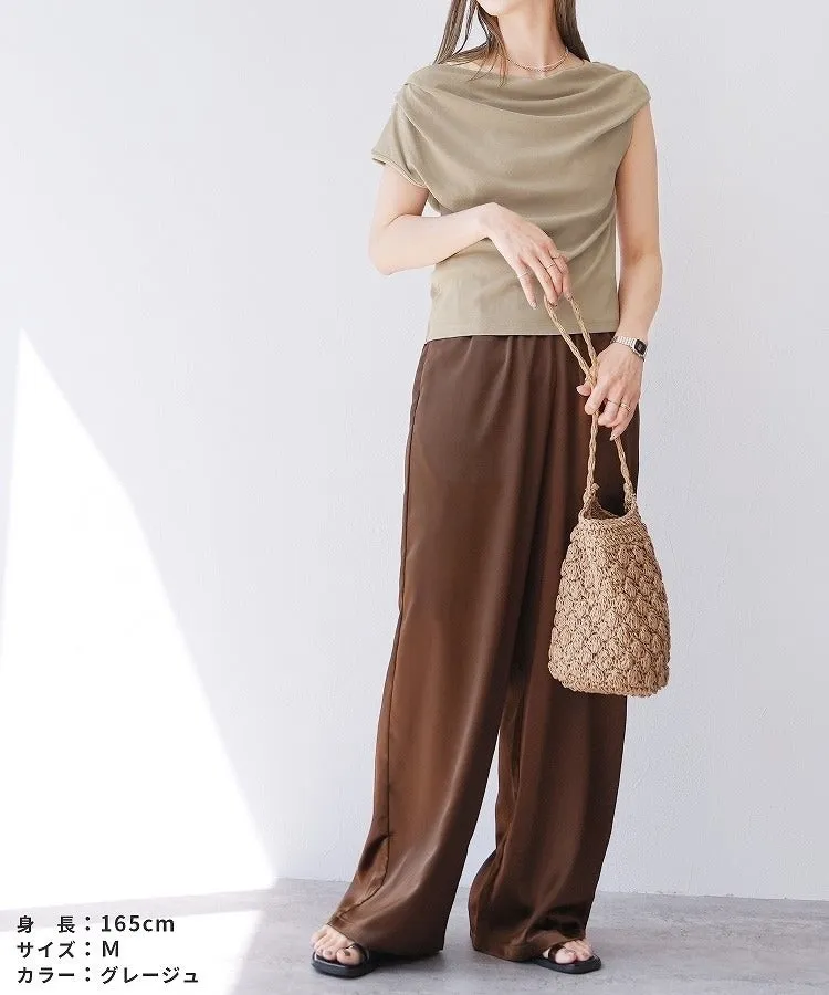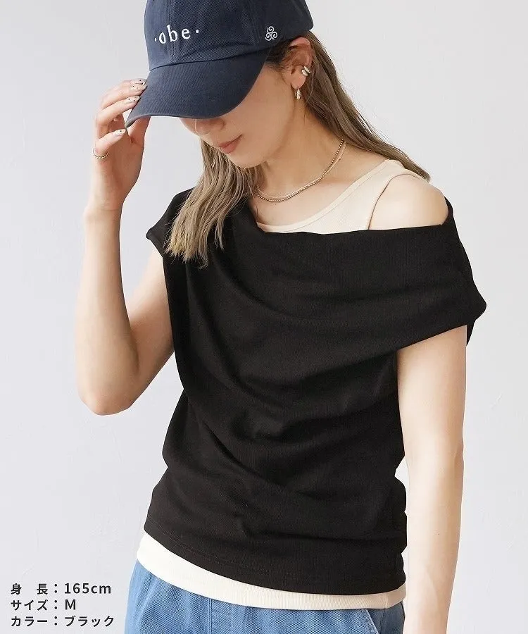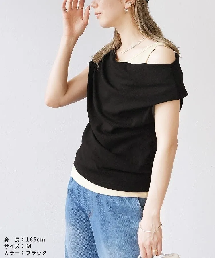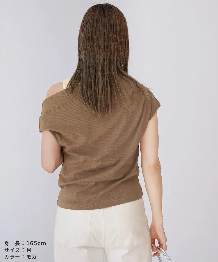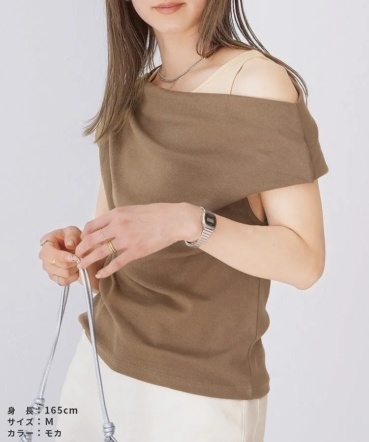 SET~兩件一組~大地自然色調彈性羅紋美鎖骨造型抓皺上衣&背心