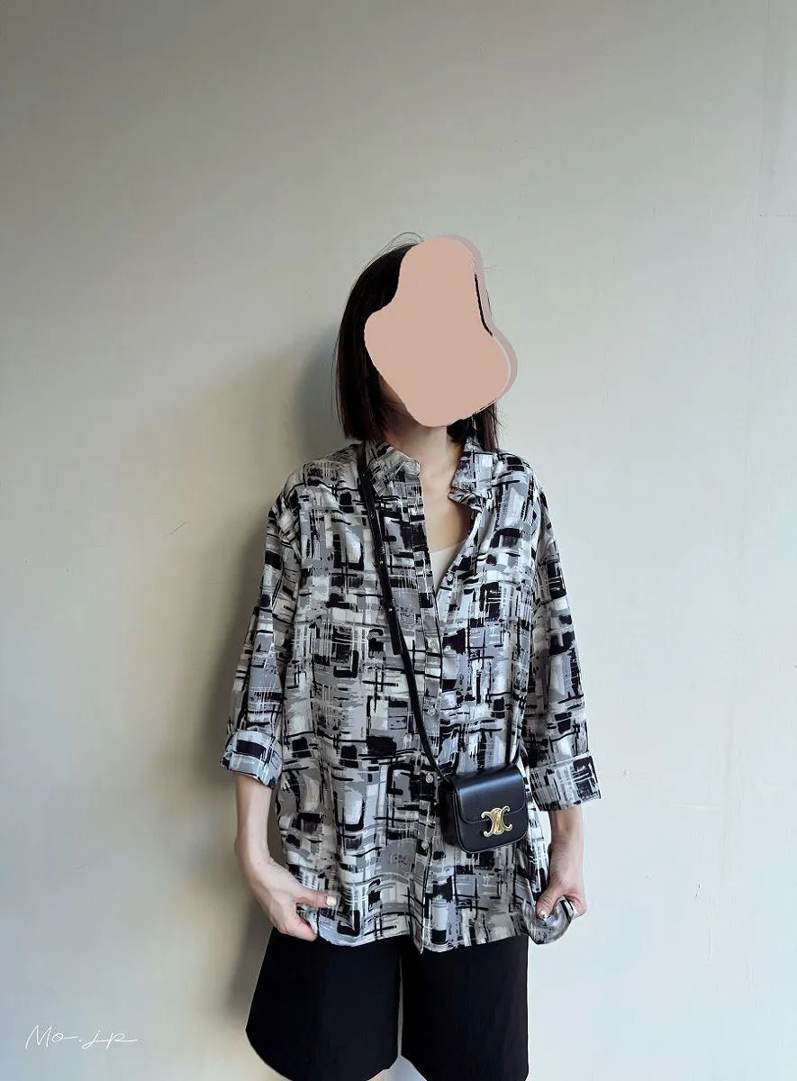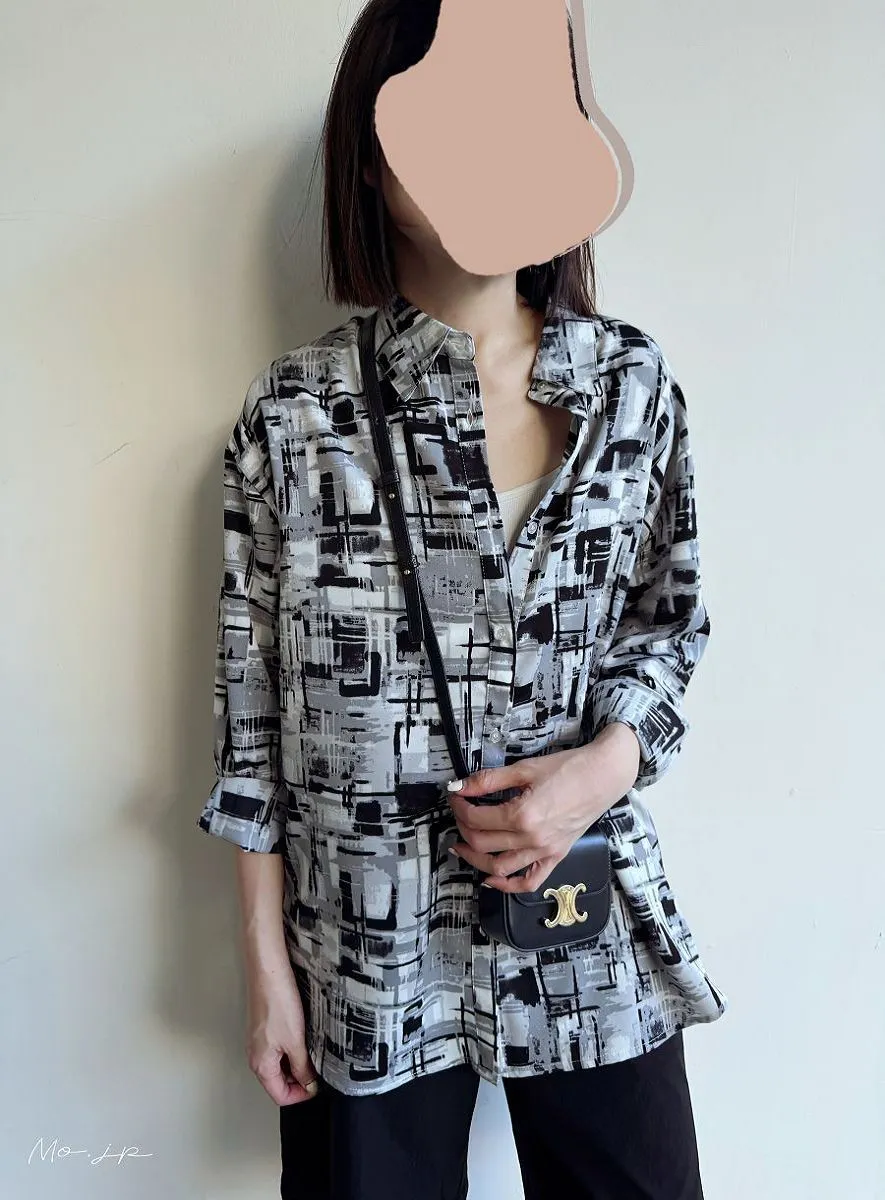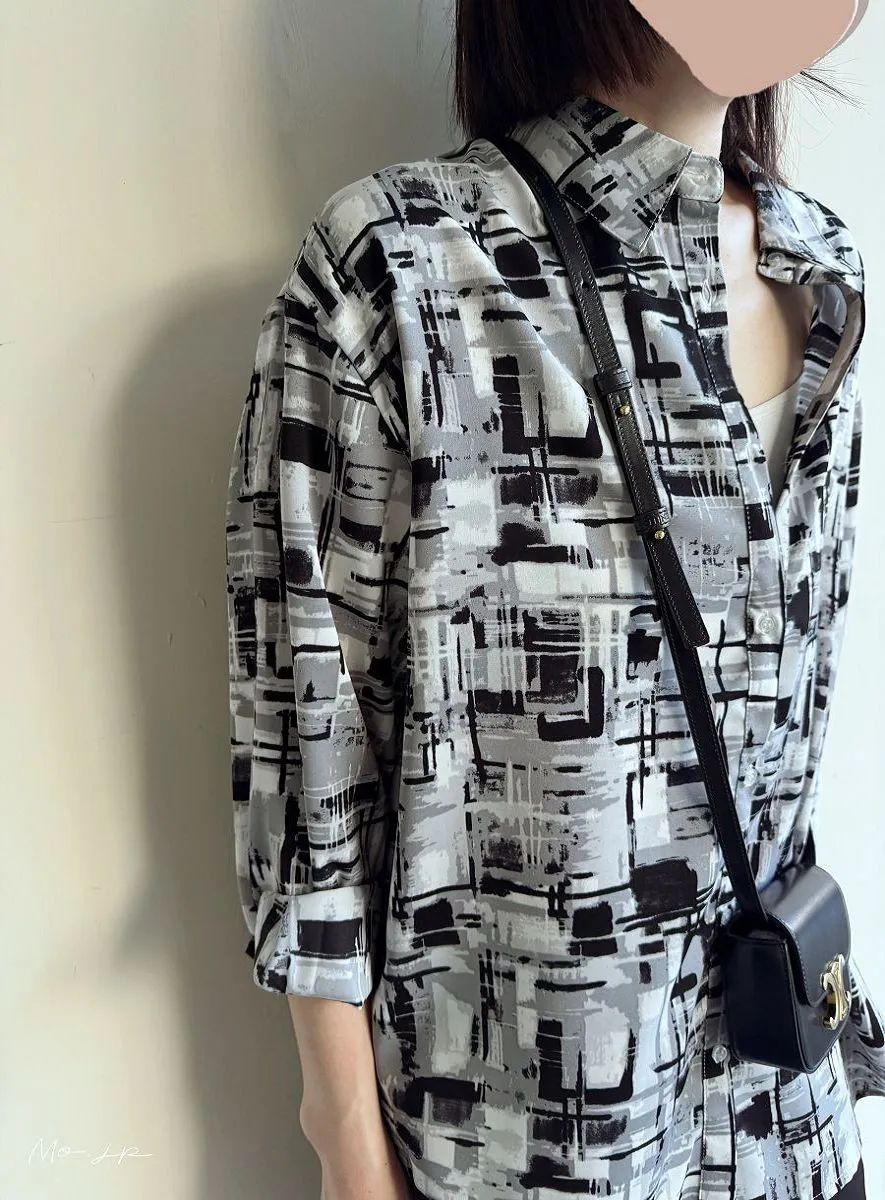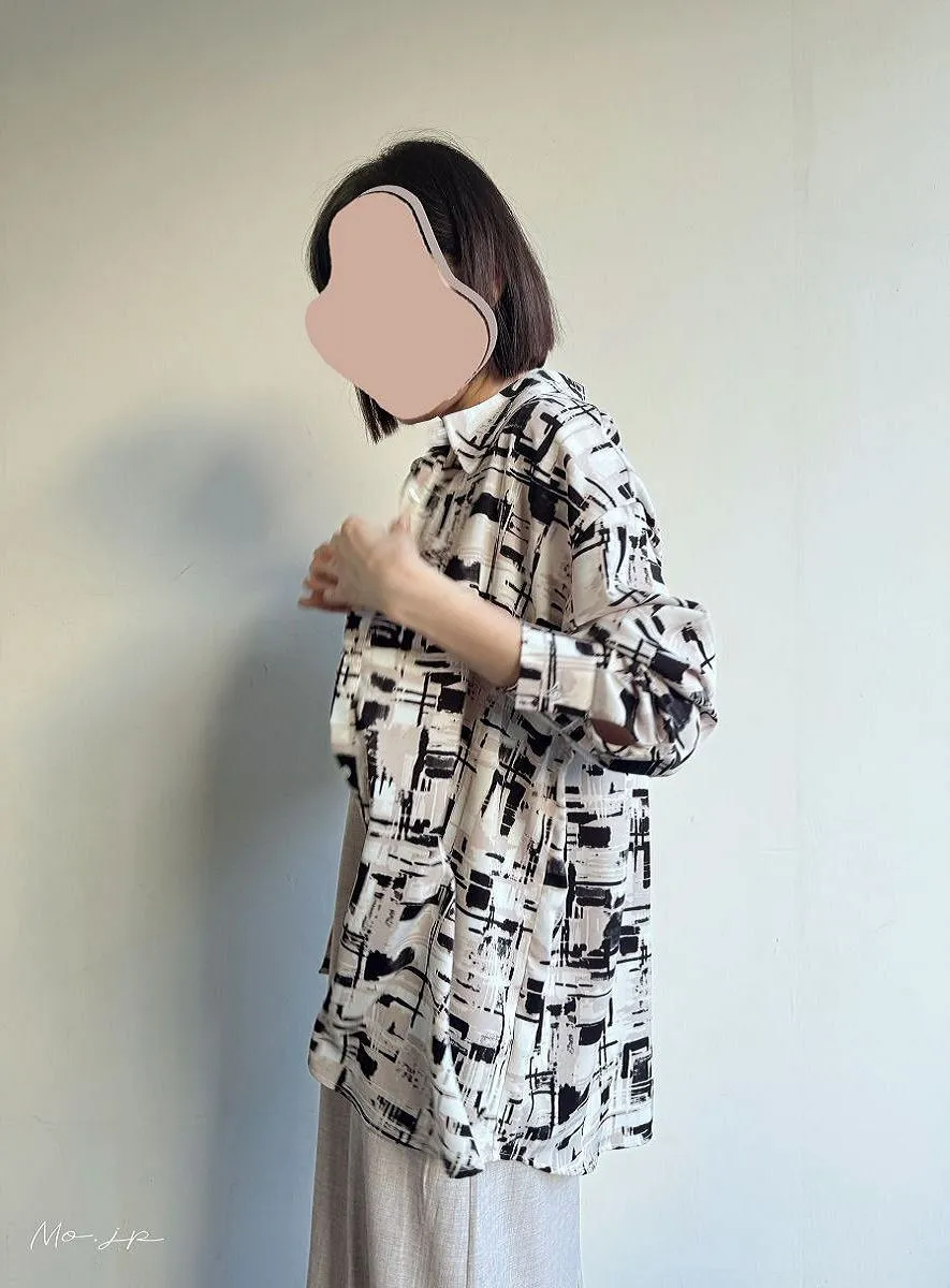 品牌超舒服~滑面雪紡襯衫日系圖騰襯衫