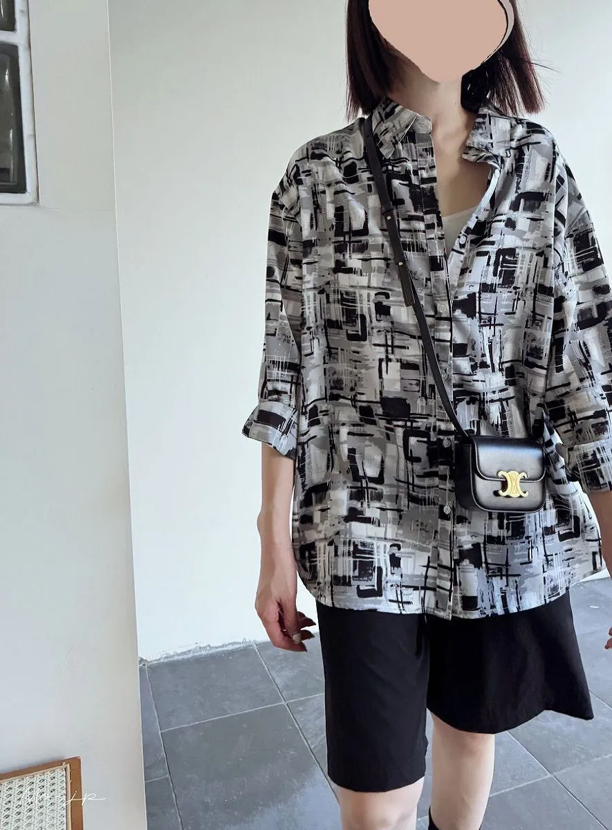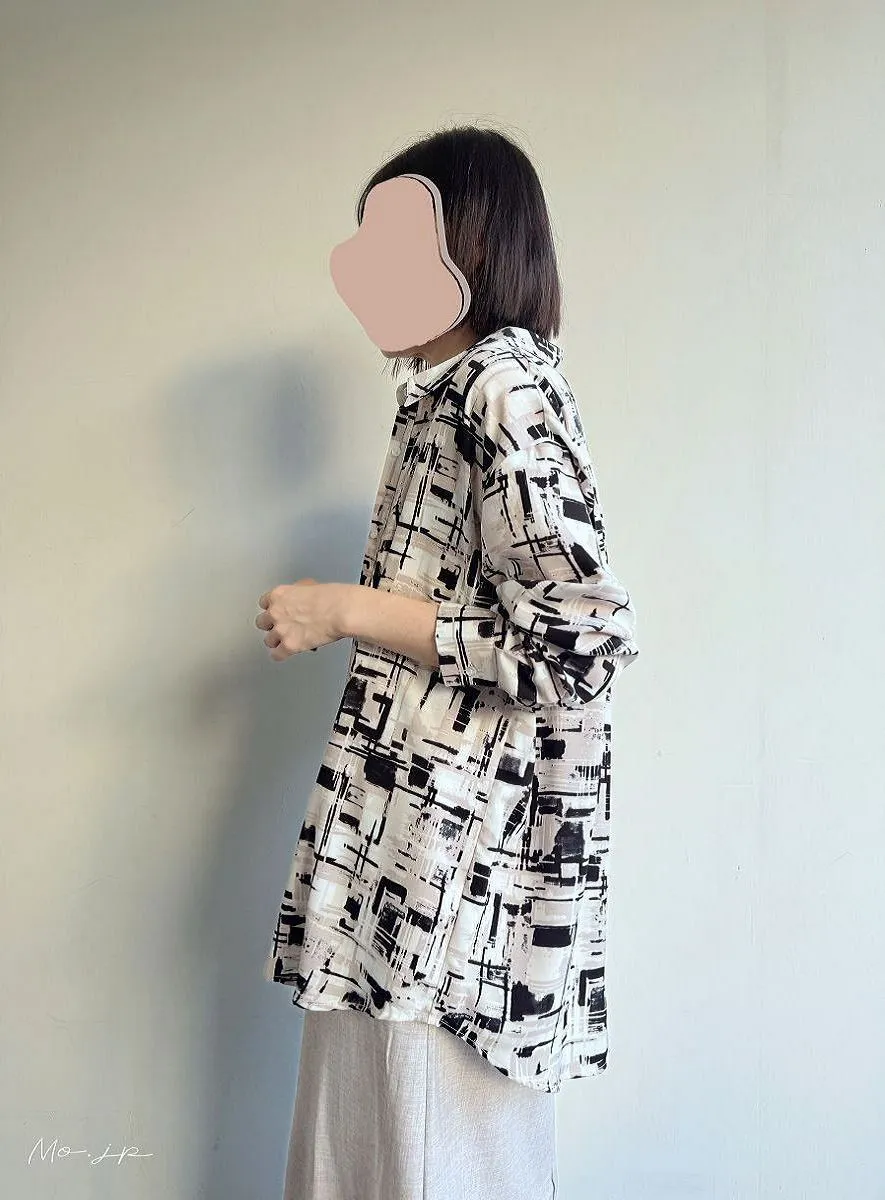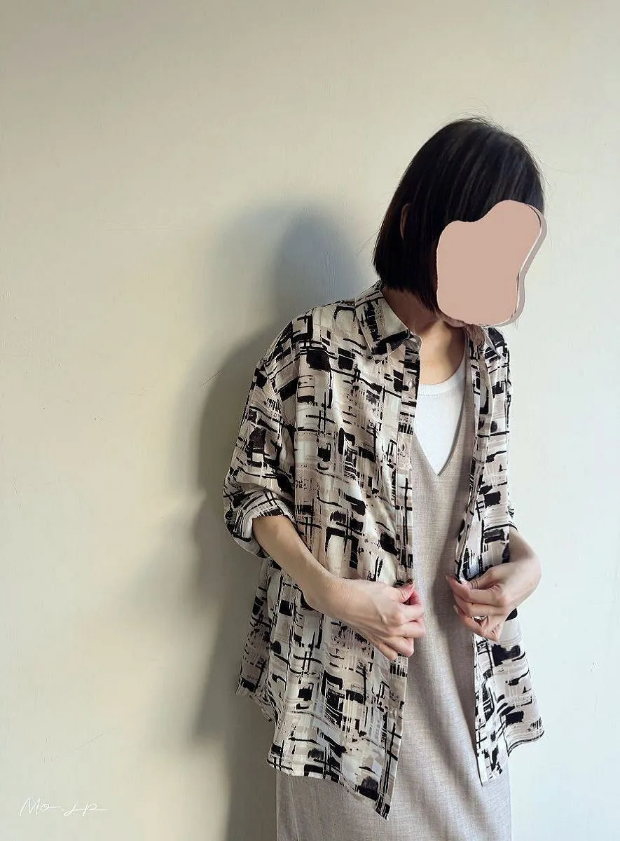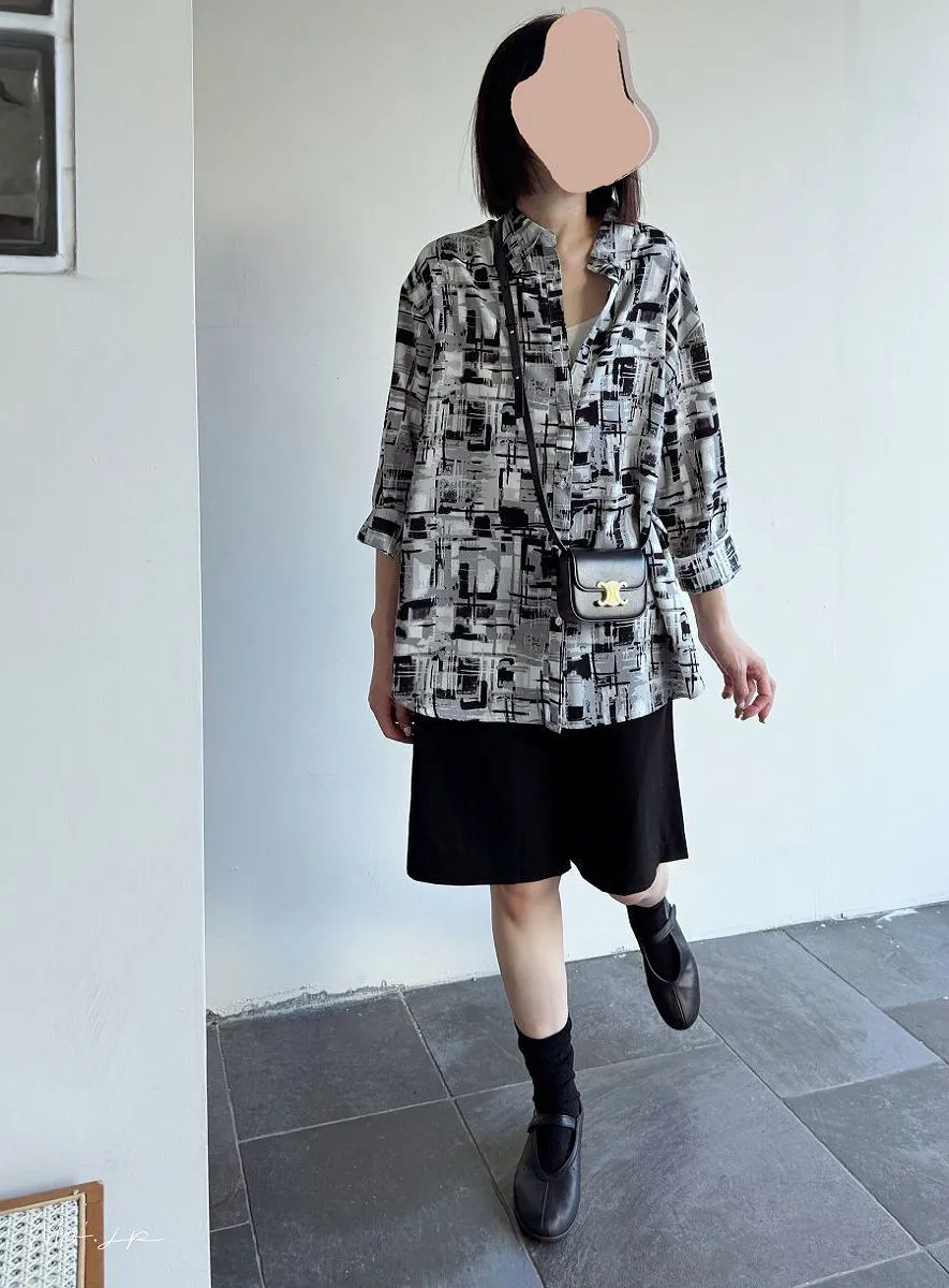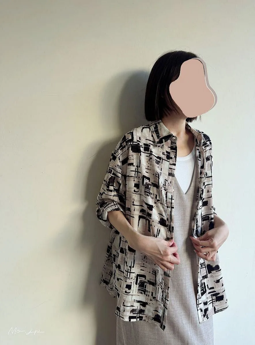 品牌超舒服~滑面雪紡襯衫日系圖騰襯衫
