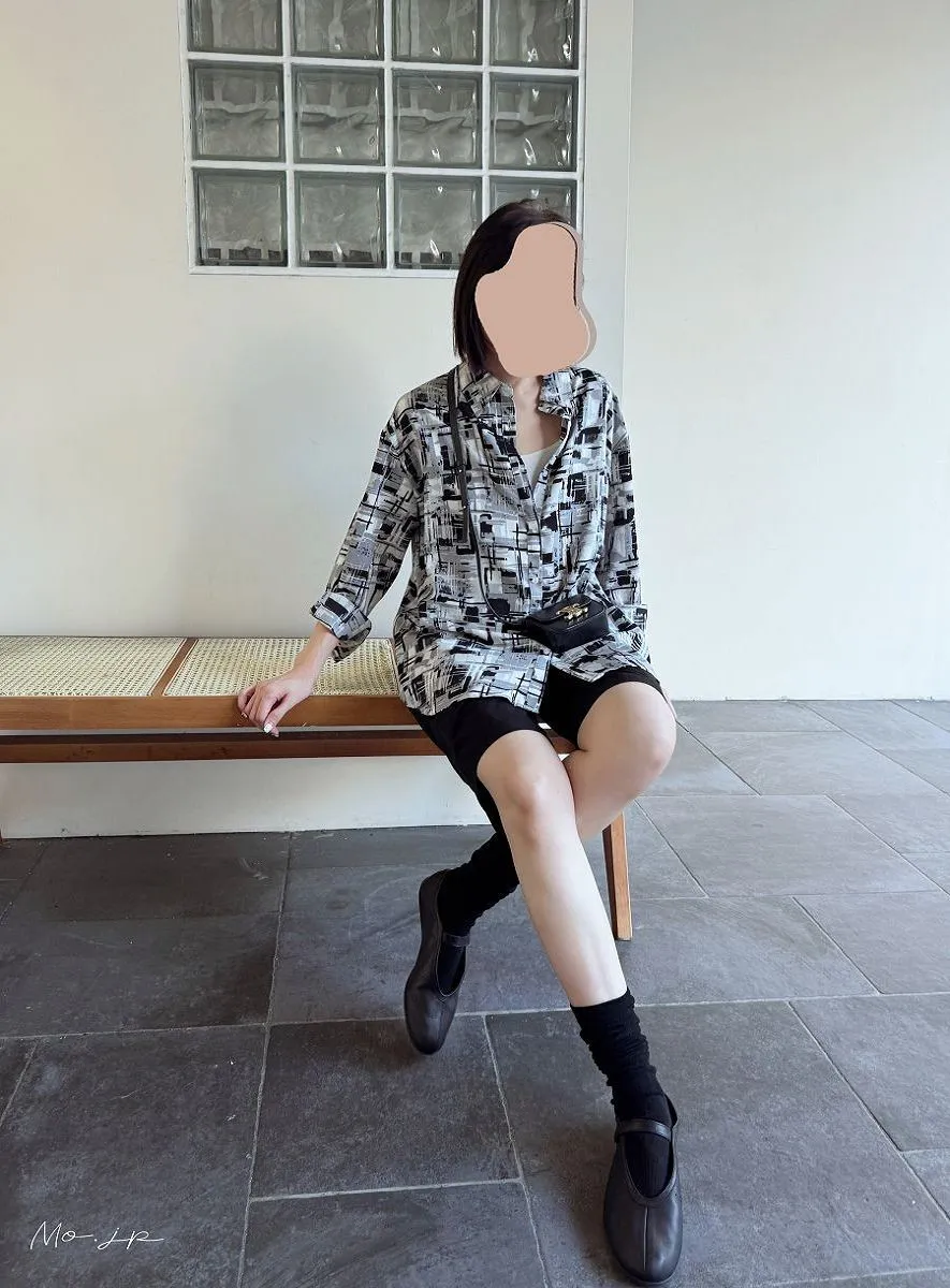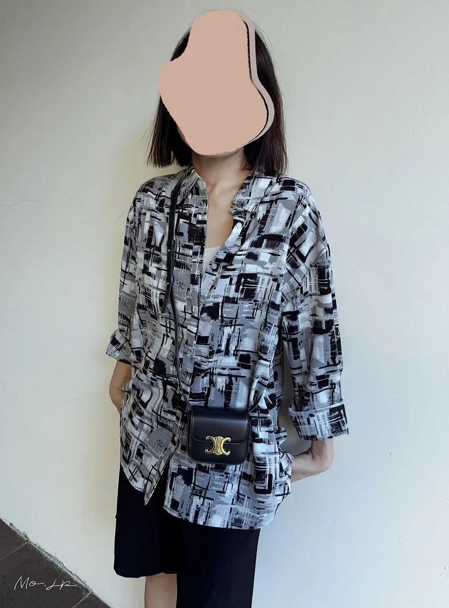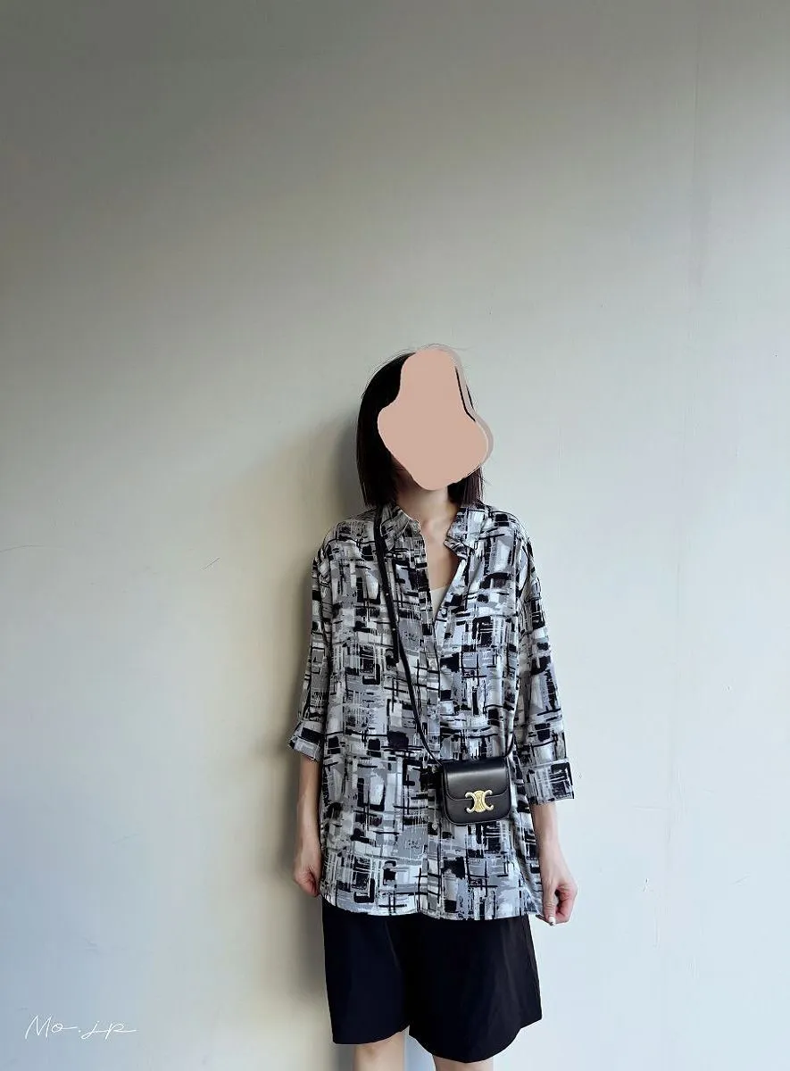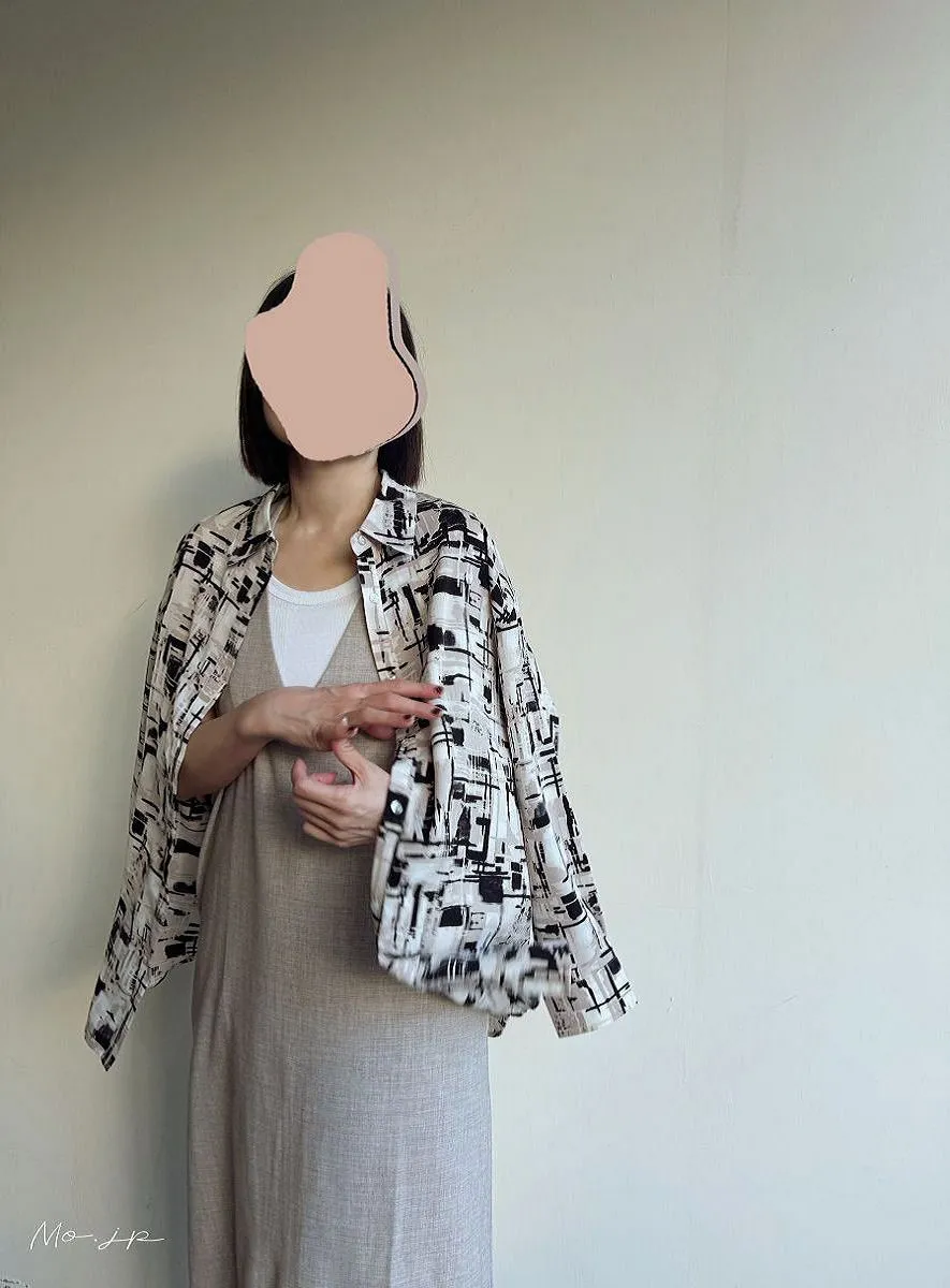 品牌超舒服~滑面雪紡襯衫日系圖騰襯衫